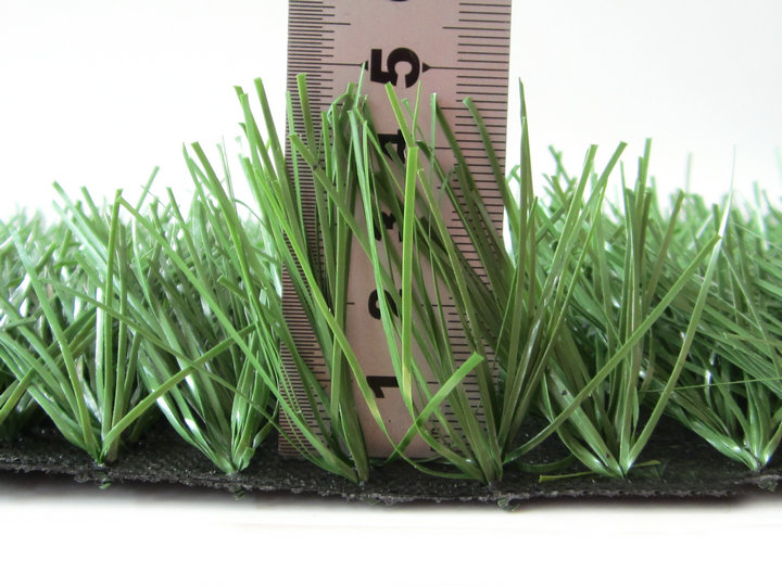 (7)、草皮全部处理完毕后开始用进口注砂机注砂,如果没有注砂机,按4M*4M的规格对全场进行放点,按不同草高的每平方米注砂公斤数将石英砂均匀的摊铺到规定区域内,用刷草机将石英砂散布均匀并将草线梳起,并纵横各梳理一次。 (8)、将绿色草皮各接缝处搭接2-3厘米,用裁草推刀从搭接处中央切开,使两边的草皮尽可能搭接紧凑,然后以裁纸刀进行修剪。