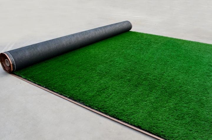 (3)、将20或30厘米宽的连接带沿草皮接缝处铺开,放入草皮下面,尽量使草皮的接缝位于连接带的中央,如果雨水打湿,需晾晒半天使之干燥,然后将胶水用橡皮刮板均匀地涂刮在连接带上,再把两边的草皮拼合,胶粘于连接带上。如果拉直后拼合处缝隙较大,可在此处隔2-5厘米割开一道,向接口处拉伸,以确保外形美观。